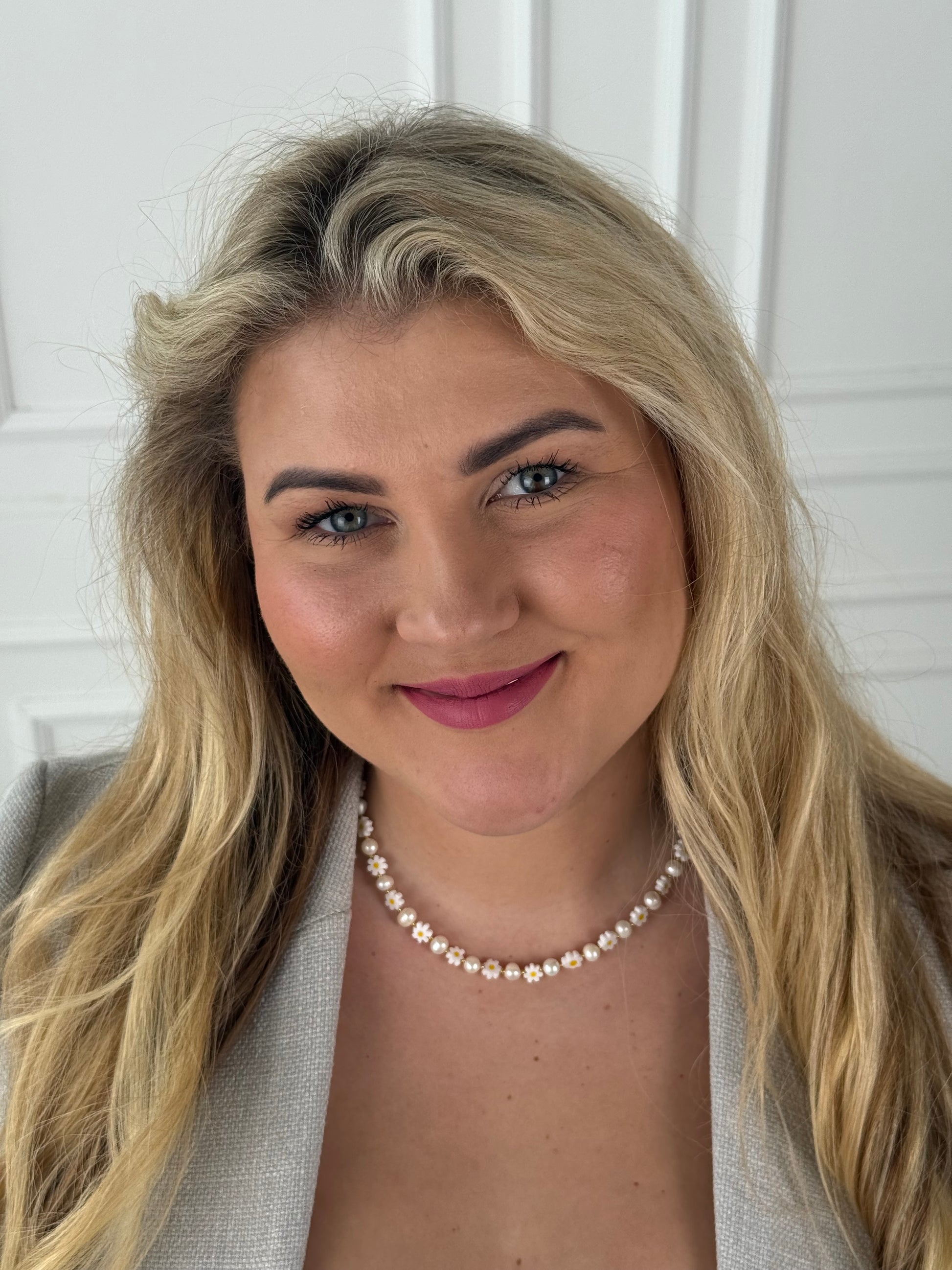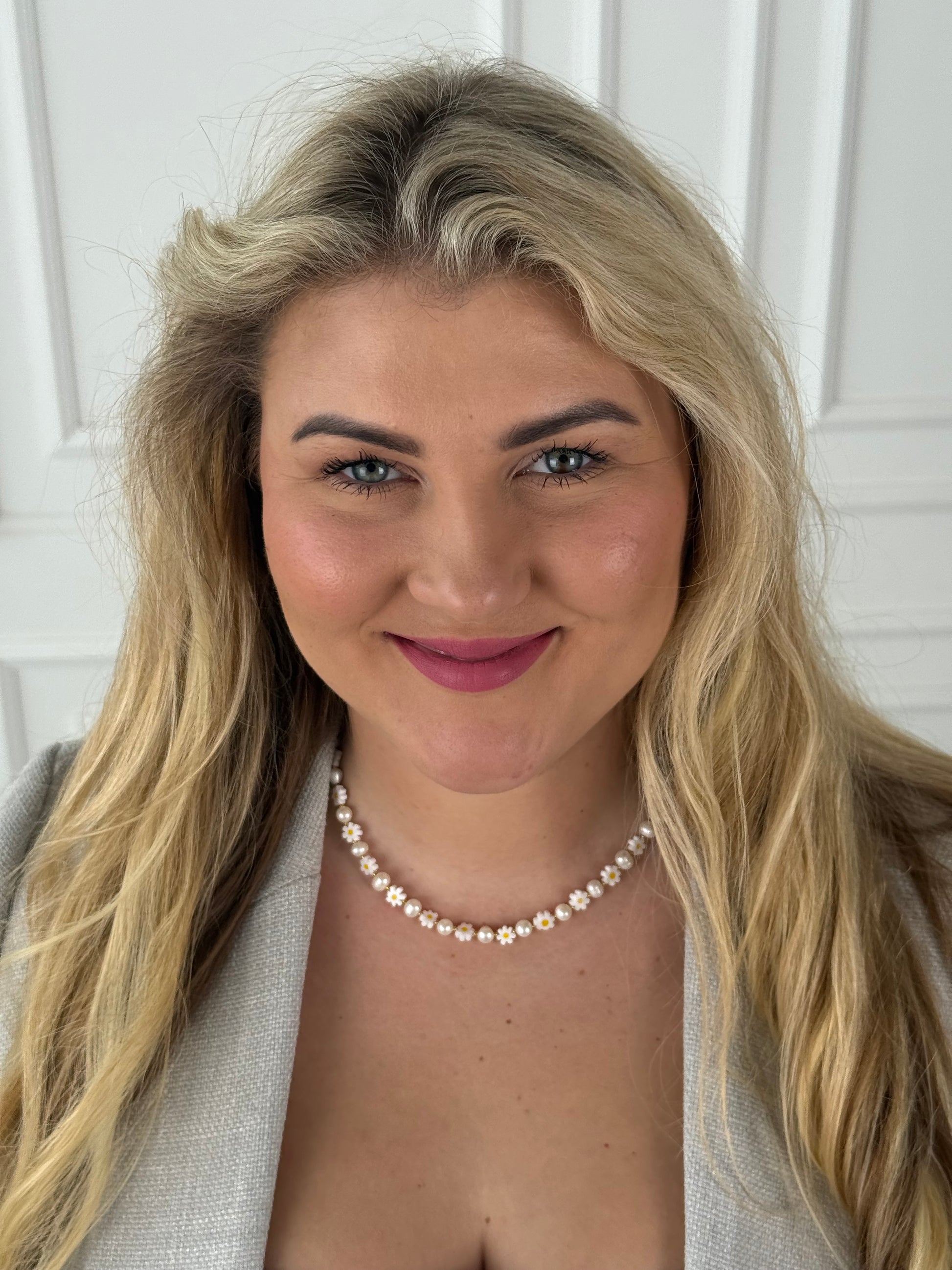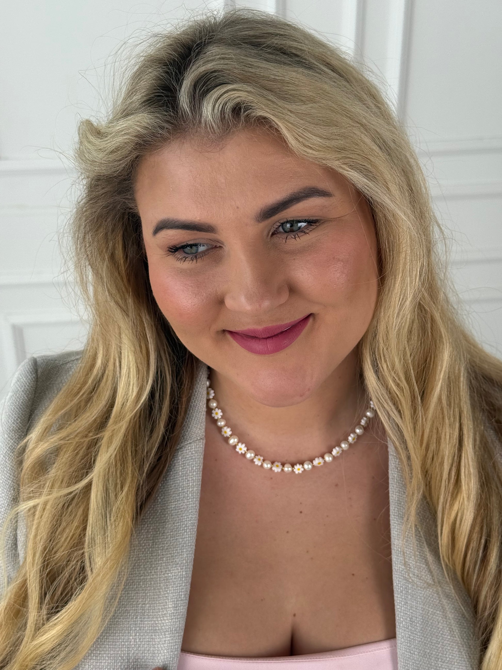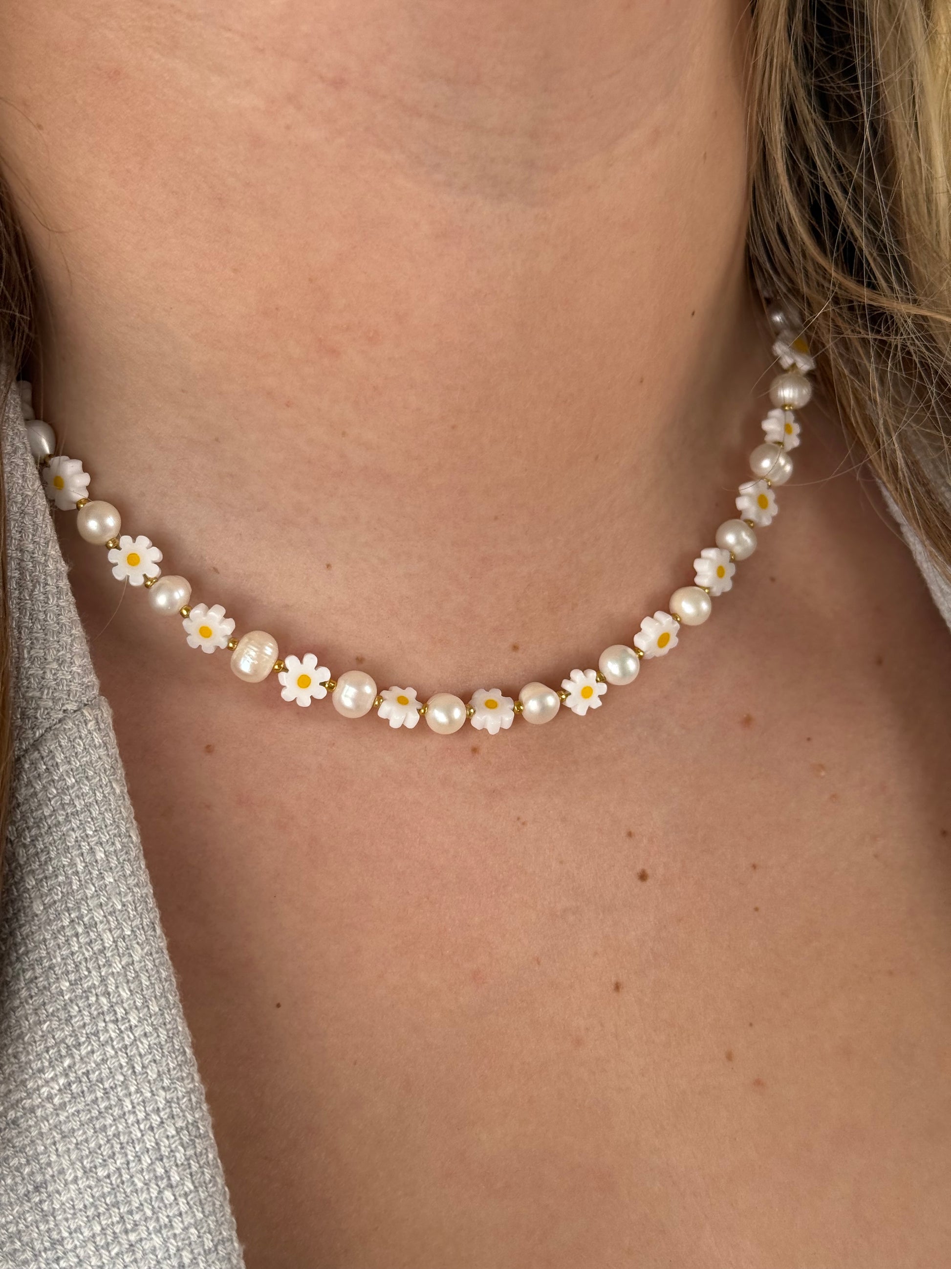 Natūralių gėlavandenių perlų vėrinys su ramunėlėmis 🌼